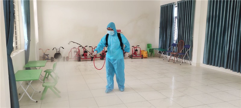 Phường Phương Đông tiến hành phun khử khuẩn Trường Tiểu học Phương Đông.