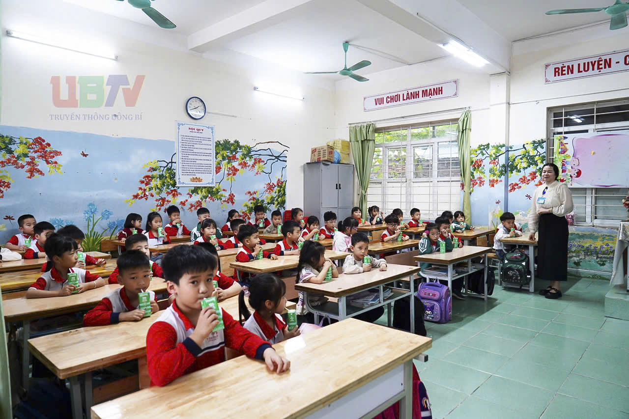 Thực hiện Nghị quyết số 86/2025/NQ-HĐND ngày 14/11/2025 của HĐND tỉnh về chính sách hỗ trợ sữa uống tại trường cho trẻ mầm non và học sinh tiểu học giai đoạn 2025-2030, từ ngày 9/3, hơn 5.700 trẻ mầm non và học sinh tiểu học tại phường Uông Bí đã bắt đầu được uống sữa. Trong đó, Trường Tiểu học & THCS Uông Bí có trên 1.100 em.