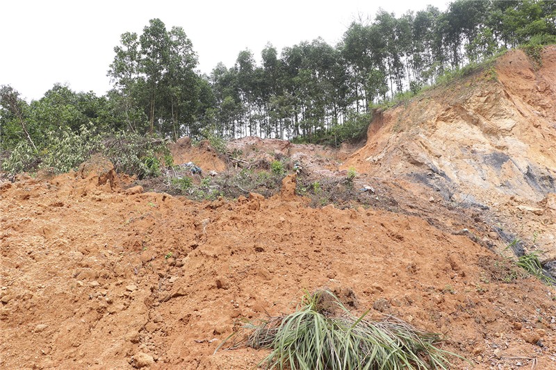 Đồng chí Nguyễn Đức Hòa - PCT UBND Thành phố cũng lãnh đạo các phòng, ban chuyên môn khảo sát địa điểm đổ đất đá sau khi khắc phục điểm sạt lở.