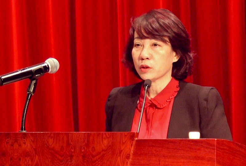 Đồng chí Vũ Thị Thu Thuỷ, Phó Chủ tịch UBND tỉnh, Hiệu Trưởng Trường Đại học Hạ Long phát biểu.