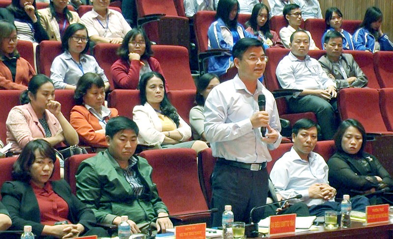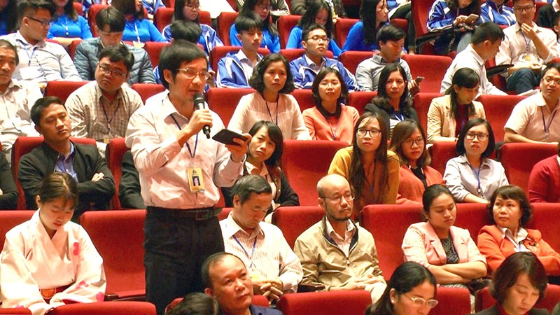 Cử tri Trường Đại học Hạ Long nêu ý kiến tại buổi tiếp xúc.