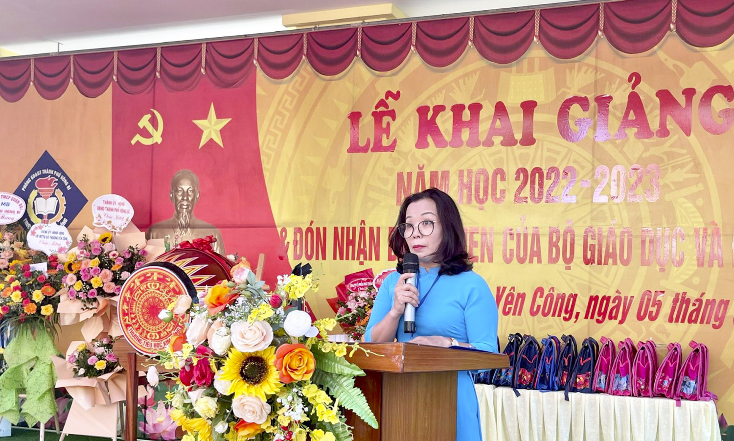 Đồng chí Nguyễn Đức Tiệp, Phó Chủ tịch UBND thành phố trao Bằng khen của Bộ Giáo giáo và Đào tạo cho nhà trường; khen thưởng các cá nhân được công nhận chiến sỹ thi đua cơ sở, có thành tích xuất sắc trong năm học 2021-2022.