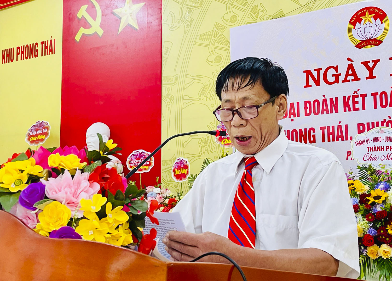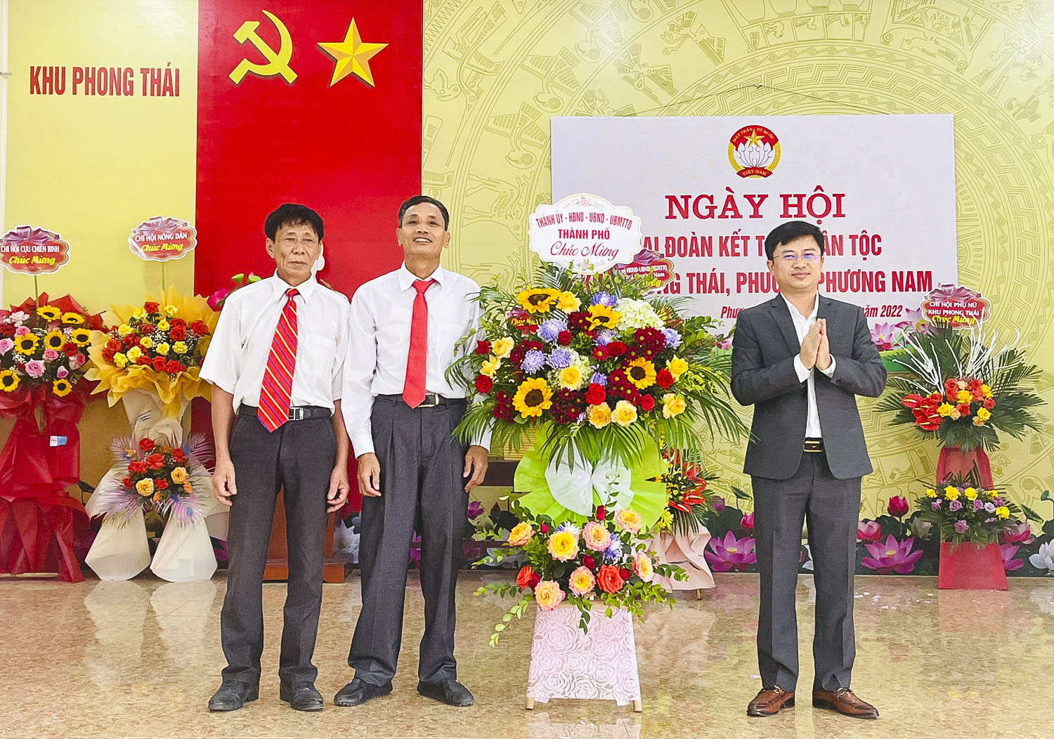 Kỷ niệm 92 năm Ngày truyền thống Mặt trận Tổ quốc Việt Nam (18/11/1930 - 18/11/2022), ngày 13/11, cán bộ, nhân dân khu Phong Thái, phường Phương Nam tổ chức Ngày hội Đại đoàn kết toàn dân tộc. Dự, chúc mừng có đồng chí Nguyễn Đức Tiệp, Phó Chủ tịch UBND thành phố, lãnh đạophường Phương Nam.