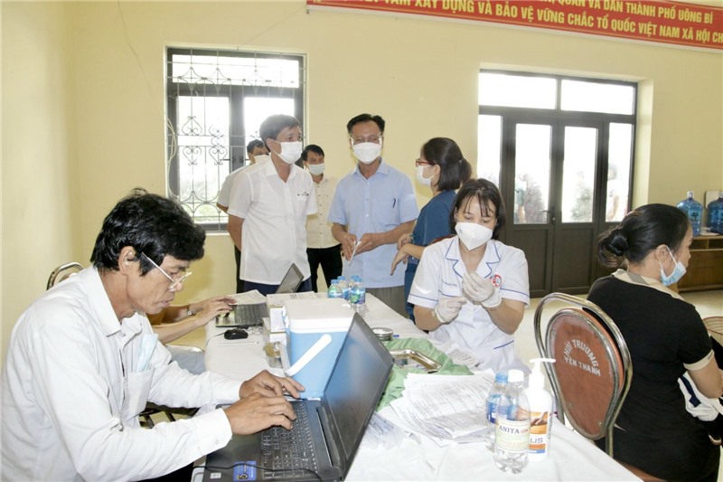 Đồng chí Nguyễn Văn Thành - Ủy viên BTV Thành ủy, PCT Thường trực UBND thành phố kiểm tra tại điểm tiêm phường Yên Thanh.