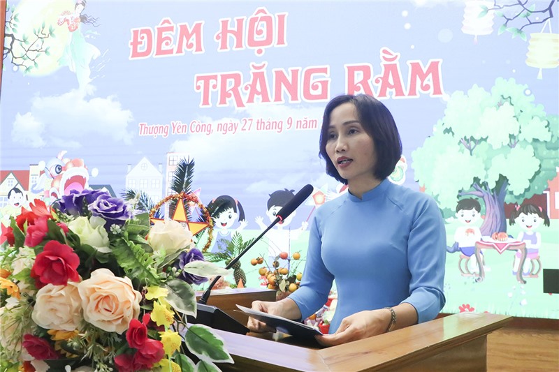 Đồng chí Phạm Thị Phương Thuý - PCT UBND xã Thượng yên Công đọc thư của Chủ tịch nước gửi các cháu thiếu nhi nhân Tết Trung thu.