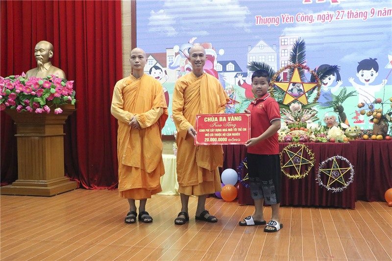 Cũng nhân dịp này, Chùa Ba Vàng đã trao tặng 20 triệu đồng cho em Đinh Khắc Hiệp, trú tại thôn Nam Mẫu 1, là trẻ em mồ côi thuộc diện hộ cận nghèo, nhằm hỗ trợ gia đình em trong việc xây nhà mới; Thiền viện Trúc lâm Yên tử tặng 50 suất quà cho các em thiếu nhi thuộc diện hộ cận nghèo, hộ có hoàn cảnh khó khăn trên địa bàn xã.