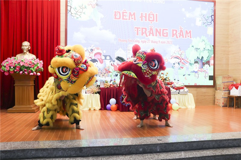 Tại đây, đồng chí PCT Thường trực UBND Thành phố đã cùng thưởng thức màn múa lân đặc sắc do đội lân của Công ty Cổ phần Phát triển Tùng Lâm thể hiện; theo dõi các tiết mục văn nghệ do các cháu thiếu nhi trường Mầm non, trường Tiểu học trên địa bàn xã Thượng Yên Công biểu diễn.