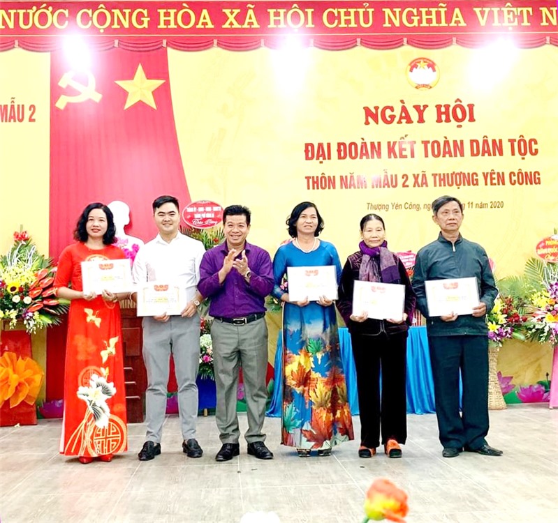 Lãnh đạo xã Thượng Yên Công trao giấy chứng nhận cho các Gia đình văn hóa 3 năm liên tục (2018-2020).