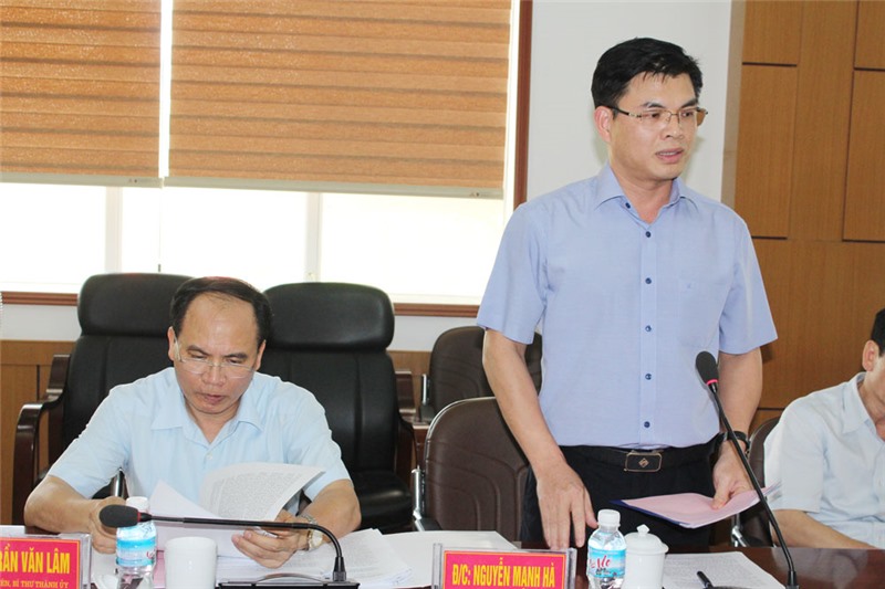 Đồng chí Nguyễn Mạnh Hà, Phó Bí thư Thành ủy, Chủ tịch UBND thành phố phát biểu ý kiến tại buổi làm việc.