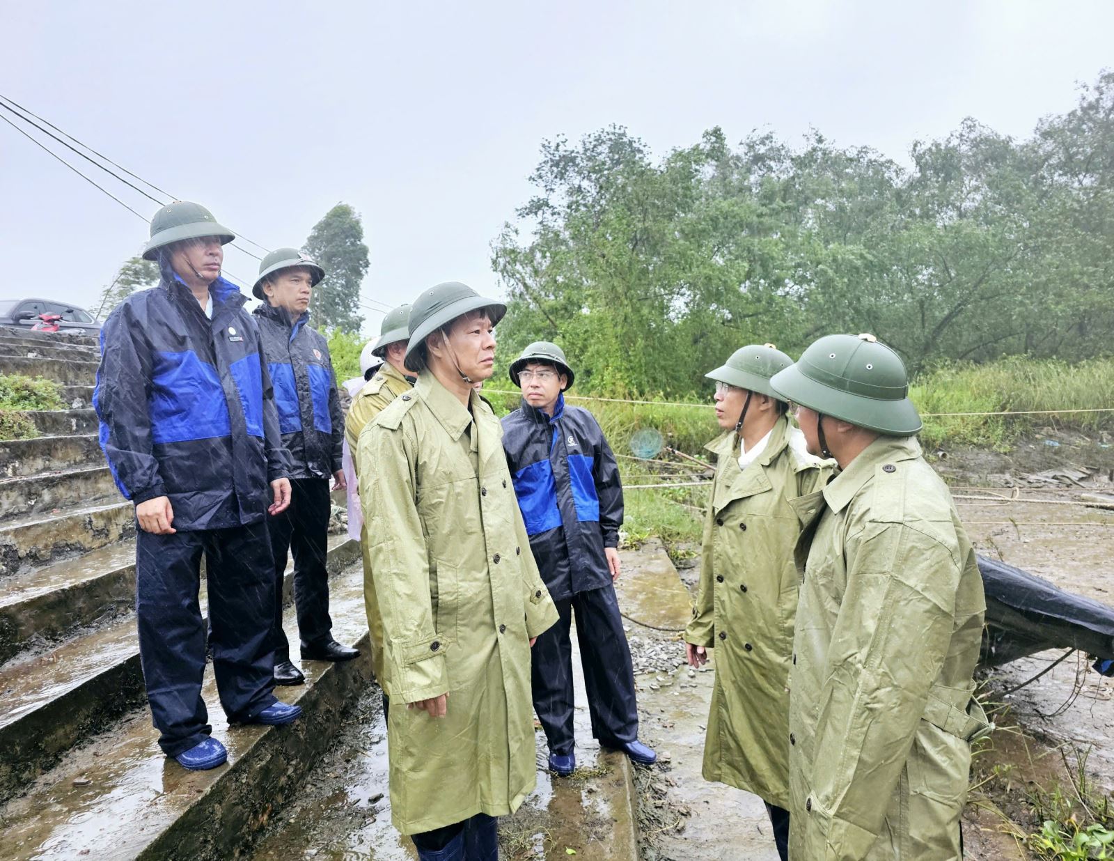 Chủ tịch UBND thành phố cùng Ban chỉ đạo phòng chống lụt bão thành phố kiểm tra công tác phòng chống lụt bão tại các điểm xung yếu tại Âu tàu, phường Yên Thanh.
