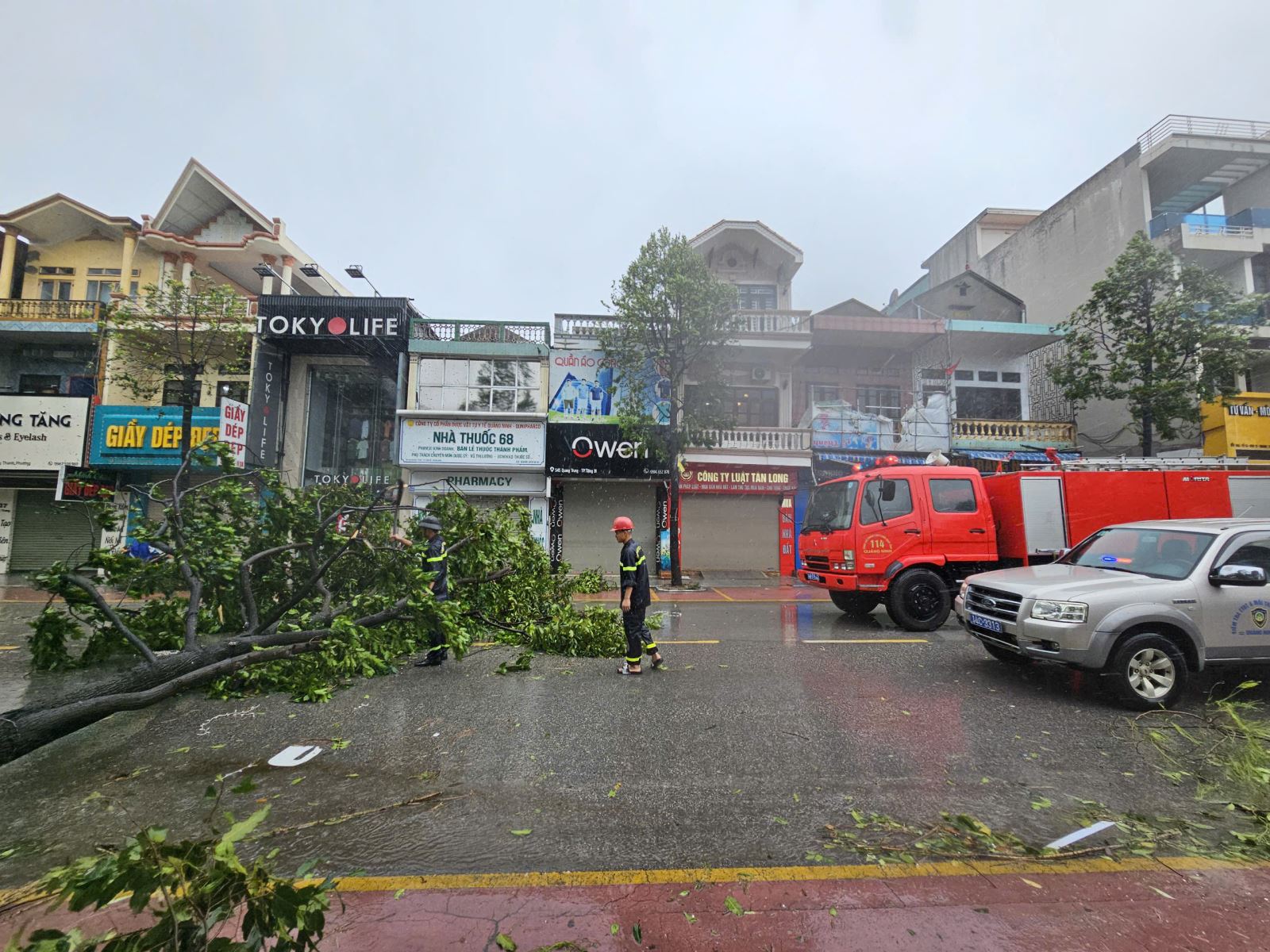 Nhiều cây xanh gãy đổ trên các tuyến đường đã được lực lượng chức năng tiến hành dọn dẹp.