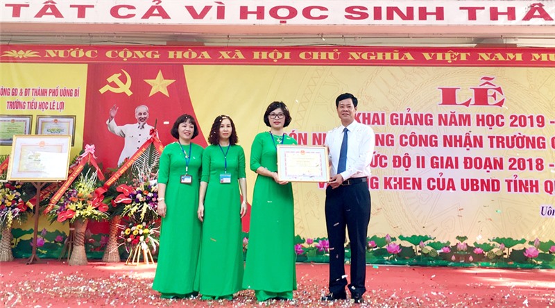 Hòa chung không khí tưng bừng đón chào năm học mới, sáng 5-9, Trường Tiểu học Lê Lợi long trọng tổ chức lễ khai giảng năm học 2019-2020; đón bằng công nhận trường chuẩn quốc gia mức độ II và Bằng khen của UBND tỉnh Quảng Ninh. Đồng chí Phạm Tuấn Đạt, Phó Bí thư Thành ủy tới dự, chúc mừng.