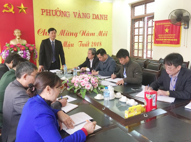 Đồng chí Phạm Tuấn Đạt, Phó Chủ tịch UBND thành phố làm việc với phường Vàng Danh rà soát công tác tuyển quân.