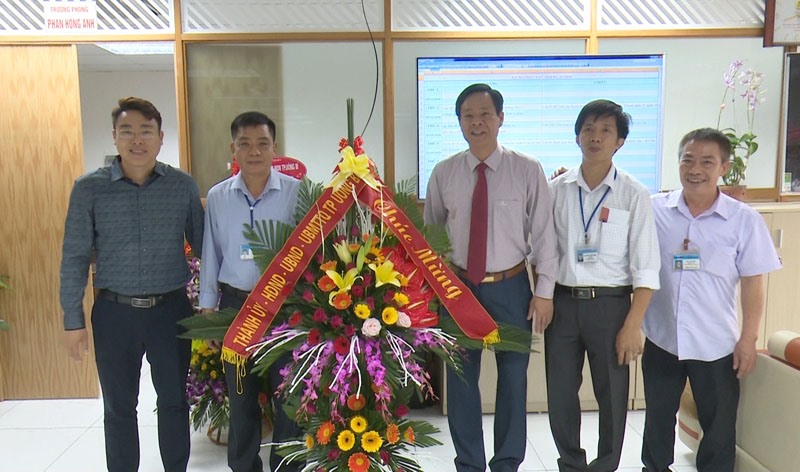 Đồng chí Phạm Tuấn Đạt, Ủy viên BTV Thành ủy, Phó Chủ tịch UBND thành phố tặng hoa, chúc mừng BLĐ, cán bộ, chuyên viên Sở GD&ĐT Quảng Ninh.