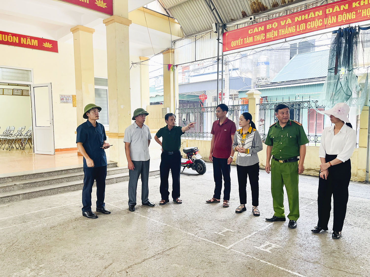 Đoàn công tác kiểm tra công tác chuẩn bị phòng chống bão số 3 tại các khu dân cư và các trường học trên địa bàn.