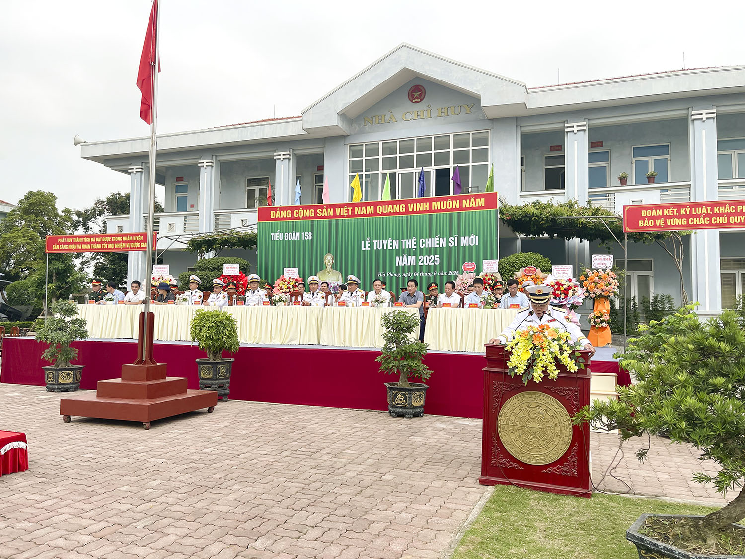 Sáng 4/6, Tiểu đoàn 158, Vùng 1 Hải quân đã tổ chức Lễ tuyên thệ chiến sĩ mới năm 2025. Dự buổi lễ có Chuẩn Đô đốc Trần Xuân Văn, Bí thư Đảng ủy, Chính ủy Vùng 1 Hải quân; đồng chí Nguyễn Chiến Thắng, Phó Bí thư Thường trực Thành ủy, Chủ tịch HĐND thành phố Uông Bí; đồng chí Đào Ngọc Sơn, Ủy viên Ban Thường vụ, Chủ tịch Ủy ban MTTQ thành phố, cùng đoàn công tác của thành phố Uông Bí.