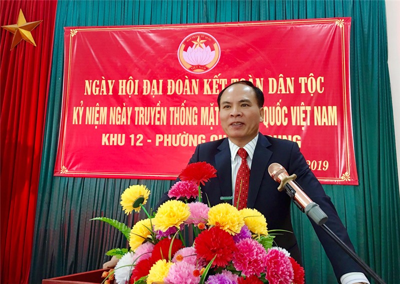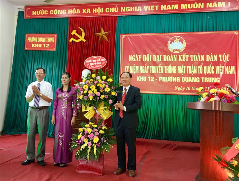 Phát biểu tại ngày hội, đồng chí Trần Văn Lâm, Tỉnh ủy viên, Bí thư Thành ủy, Chủ tịch HĐND thành phố biểu dương, đánh giá cao những kết quả cán bộ, nhân dân khu 12, phường Quang Trung đạt được trong phát triển KT-XH, thực hiện các phong trào, cuộc vận động “Toàn dân đoàn kết xây dựng nông thôn mới, đô thị văn minh”.
