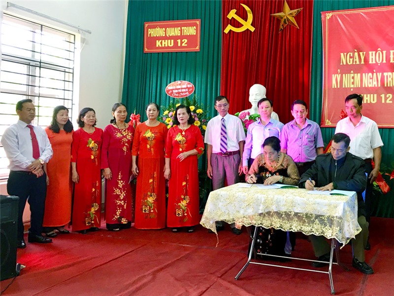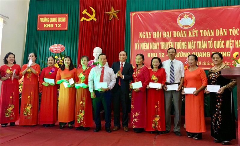 Nhân dịp này, khu 12, phường Quang Trung công nhận, khen thưởng 504 gia đình đạt danh hiệu gia đình văn hóa và 480 gia đình đạt danh hiệu gia đình văn hóa 3 năm liên tục; khen thưởng các tập thể, cá nhân xuất sắc, tiêu biểu trong phong trào Toàn dân đoàn kết xây dựng đời sống văn hóa ở khu dân cư.