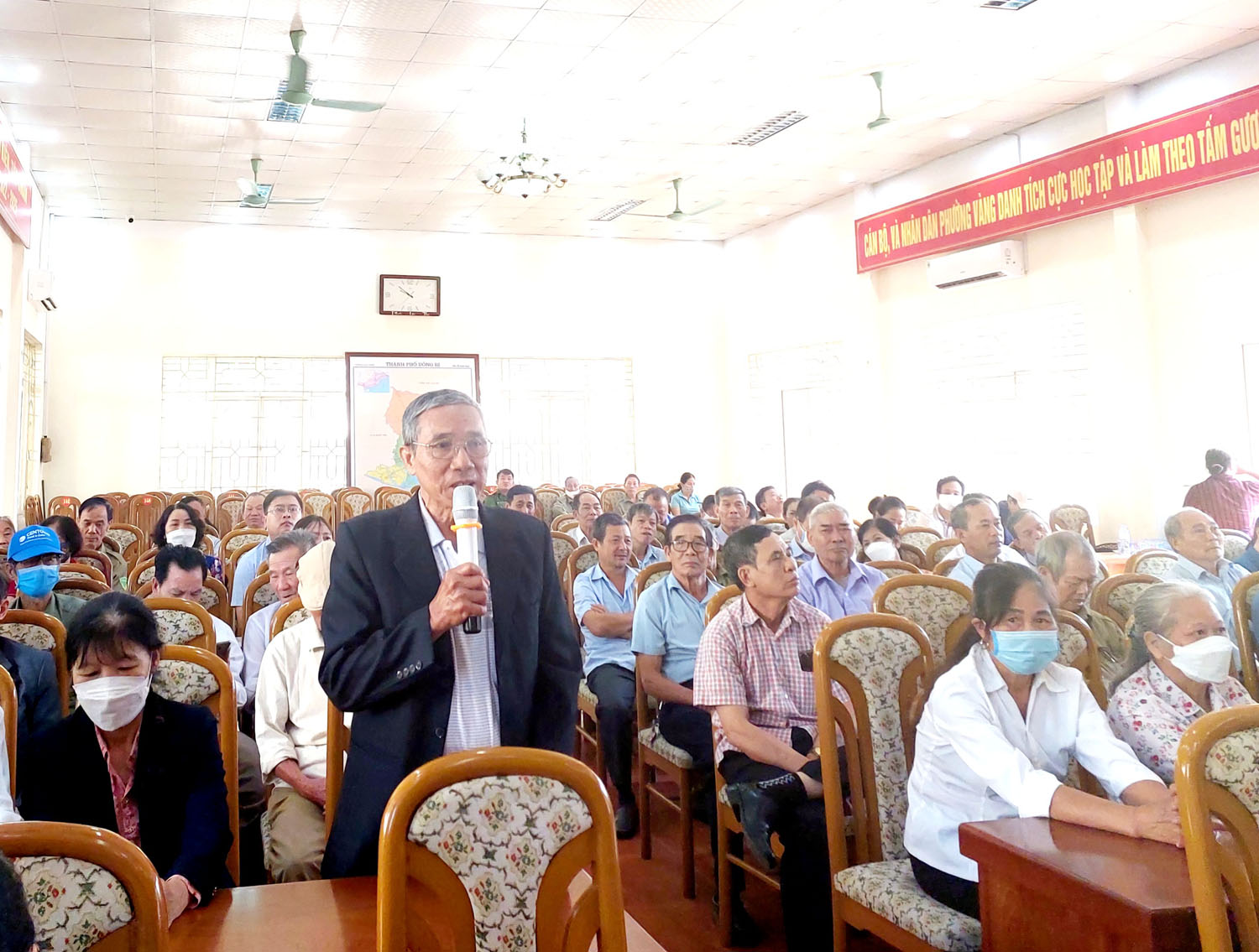 Tại buổi tiếp xúc, cử tri phường Vàng Danh vui mừng, phấn khởi trước kết quả phát triển KT-XH của tỉnh và thành phố trong năm 2022.