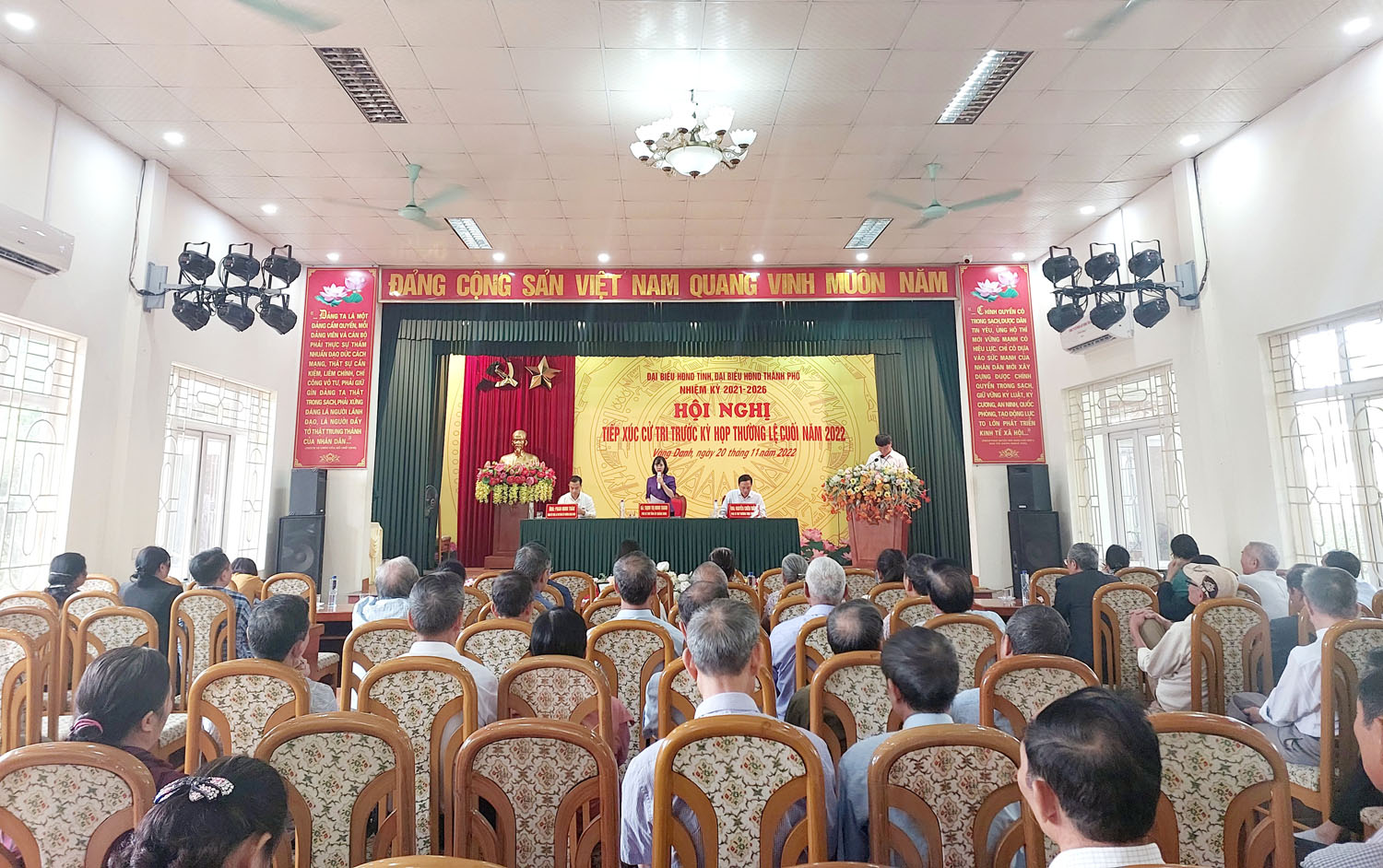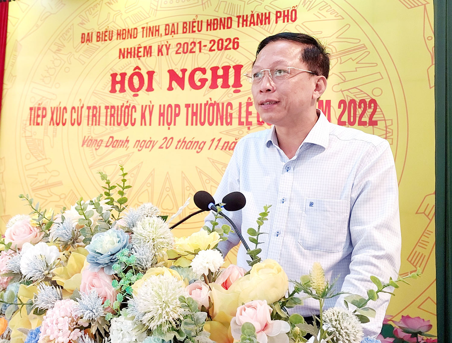 Cũng tại hội nghị, cử tri phường Vàng Danh đã nghe đồng chí Nguyễn Chiến Thắng, Phó Bí thư Thường trực Thành ủy thông tin về kết quả thực hiện nhiệm vụ phát triển kinh tế - xã hội trên địa bàn thành phố năm 2022, phương hướng và các nhiệm vụ trọng tâm năm 2023; dự kiến nội dung chương trình kỳ họp thường lệ cuối năm 2022 của HĐND thành phố.