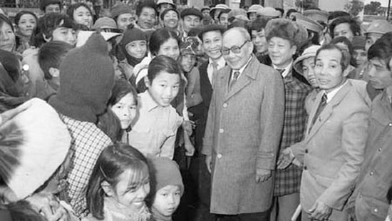 Đồng chí Võ Chí Công thăm hỏi bà con xã Phước Trà, huyện Hiệp Đức, tỉnh Quảng Nam năm 1991 (Ảnh tư liệu).