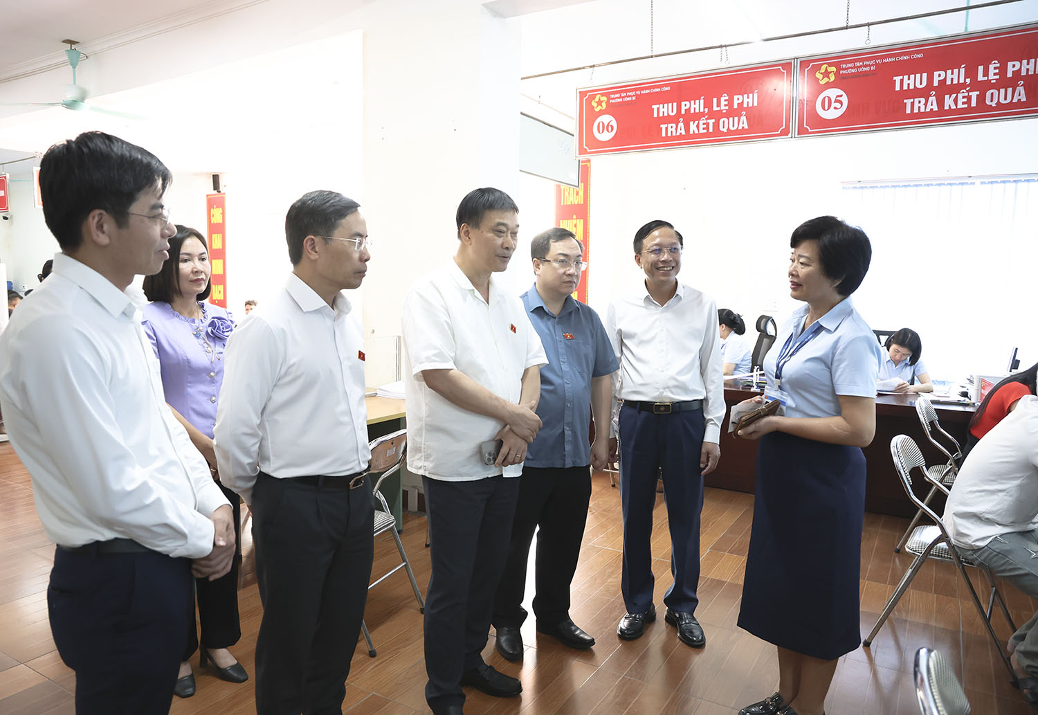 Đoàn ĐHQH cũng dành thời gian trao đổi với người dân về những đánh giá ban đầu về hoạt động của Trung tâm phục vụ hành chính công phường Uông Bí theo mô hình chính quyền địa phương 2 cấp.