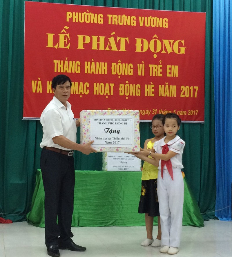 * Ngày 31-5, đồng chí Đặng Đình Sách, Phó Chủ tịch Ủy ban nhân dân thành phố cùng lãnh đạo Phòng Lao động, Thương binh & Xã hội, Thành Đoàn Uông Bí dự Lễ phát động Tháng hành động Vì trẻ em, khai mạc hoạt động hè năm 2017 và trao quà cho các cháu thiếu nhi nhân ngày 1-6 tại phường Trưng Vương.