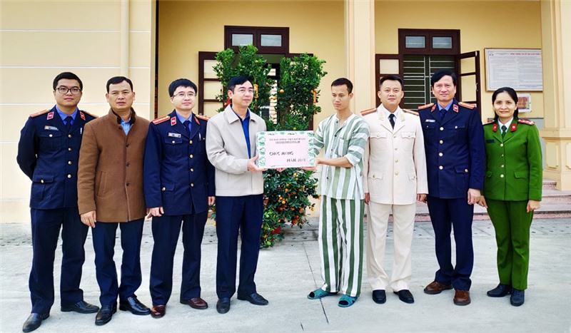 Lãnh đạo MTTQ, Viện Kiểm sát thành phố tặng quà Tết cán bộ, chiến sỹ làm nhiệm vụ và những người bị tạm giam, tạm giữ, phạm nhân tại nhà tạm giữ công an thành phố.