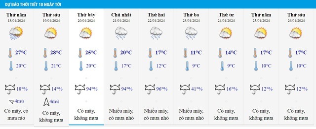 Dự báo thời tiết 10 ngày tới của Trung tâm Dự báo Khí tượng Thủy văn Quốc gia.
