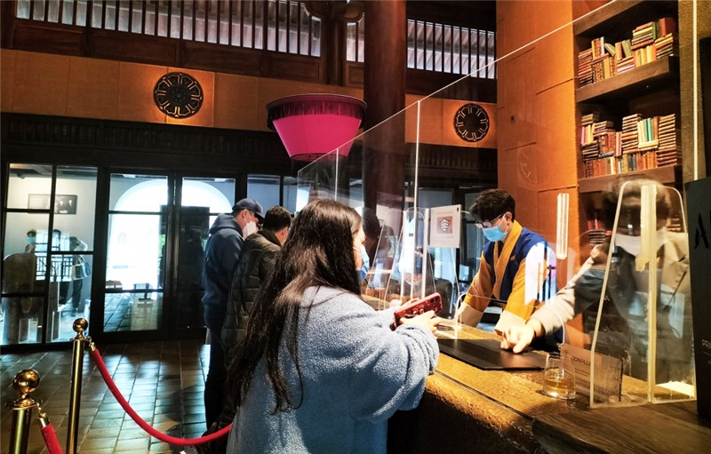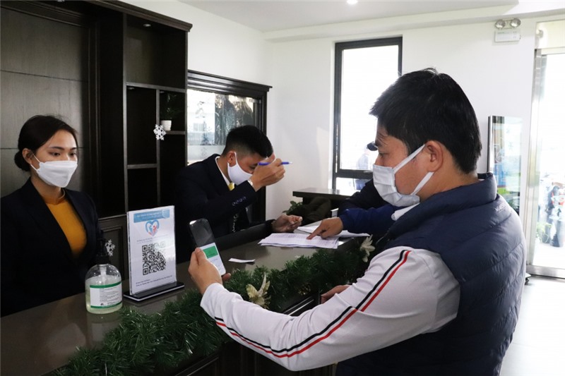 Du khách làm thủ tục tại khu du lịch Legacy Yên Tử ngày 1/1/2022.