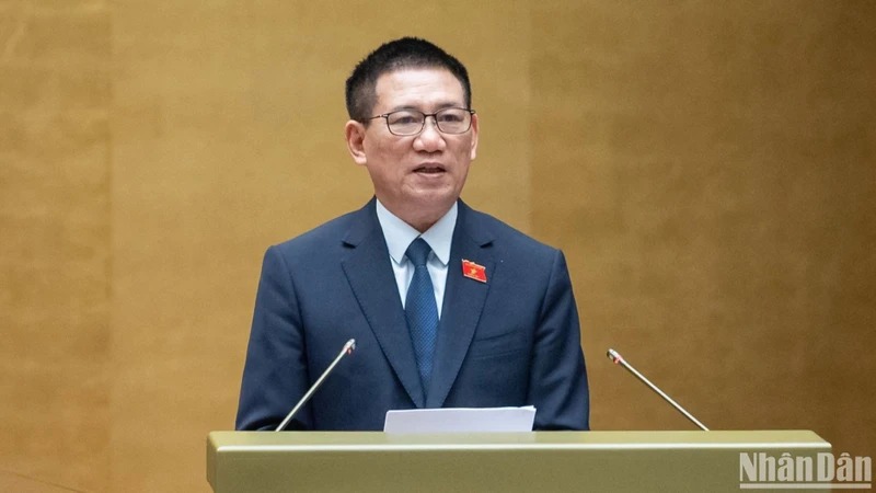 Bộ trưởng Tài chính Hồ Đức Phớc trình bày báo cáo về tình hình thực hiện ngân sách nhà nước năm 2023, dự toán ngân sách nhà nước, phương án phân bổ ngân sách trung ương năm 2024. (Ảnh: THỦY NGUYÊN)
