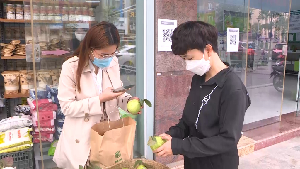 Người dân dùng mã QR để kiểm tra nguồn gốc xuất xứ hàng hóa đối với ổi Sơn Dương (TP Hạ Long).