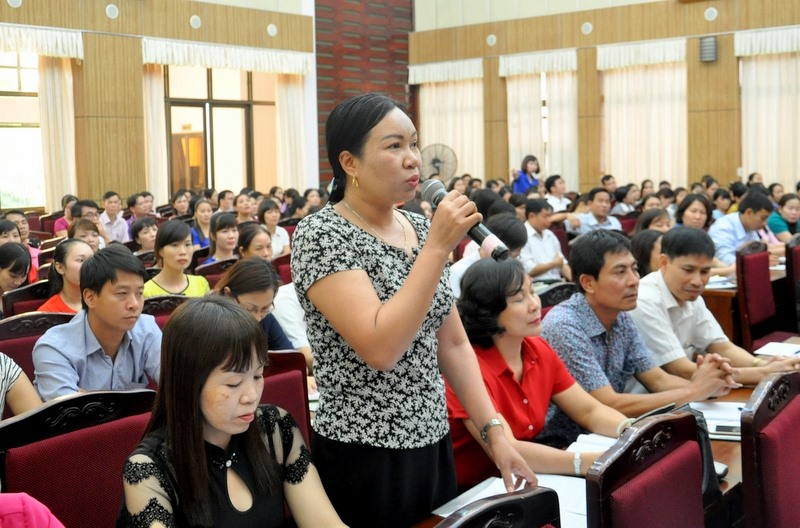 Đại diện lãnh đạo các địa phương, phòng GD&ĐT, thầy cô giáo, học sinh và phụ huynh đóng góp ý kiến tại hội nghị.