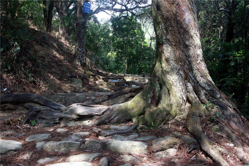 Rễ cây Xích Tùng cổ bám sâu dưới lòng đất và mọc lên cả mặt đường đi.