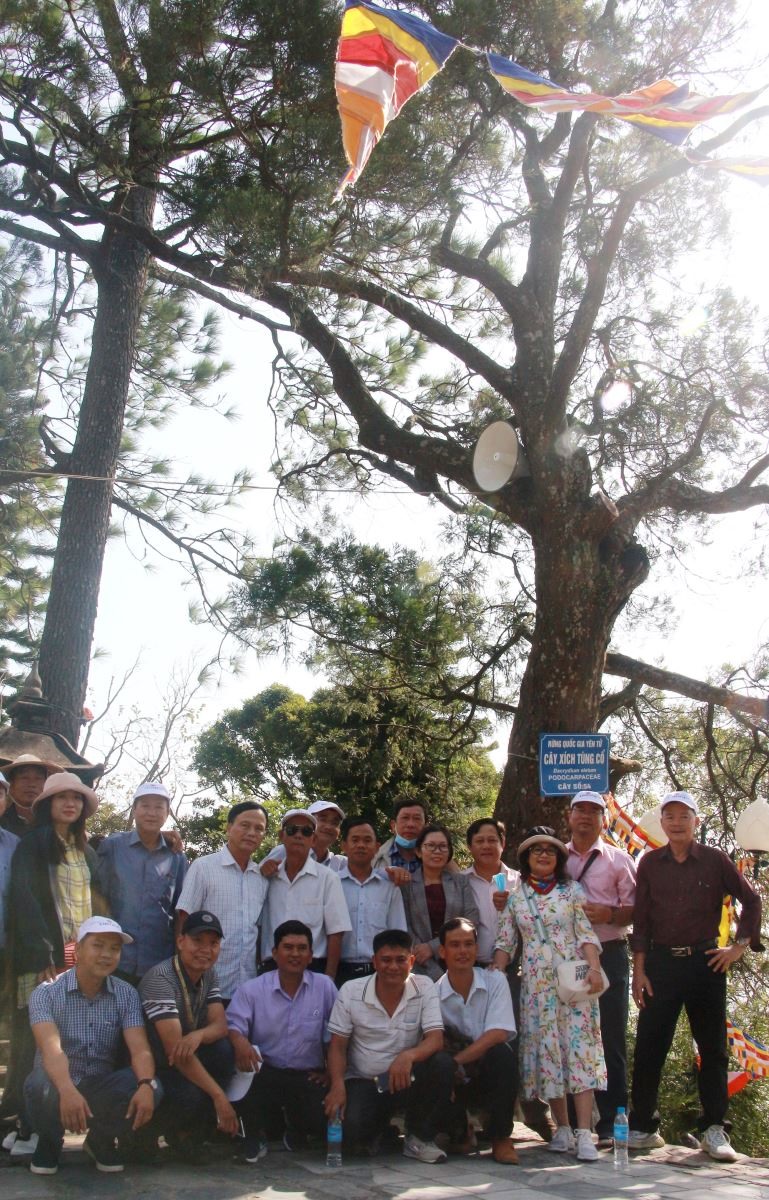 Khách du lịch chụp ảnh lưu giữ kỷ niệm trước những cây Xích Tùng cổ Yên Tử.