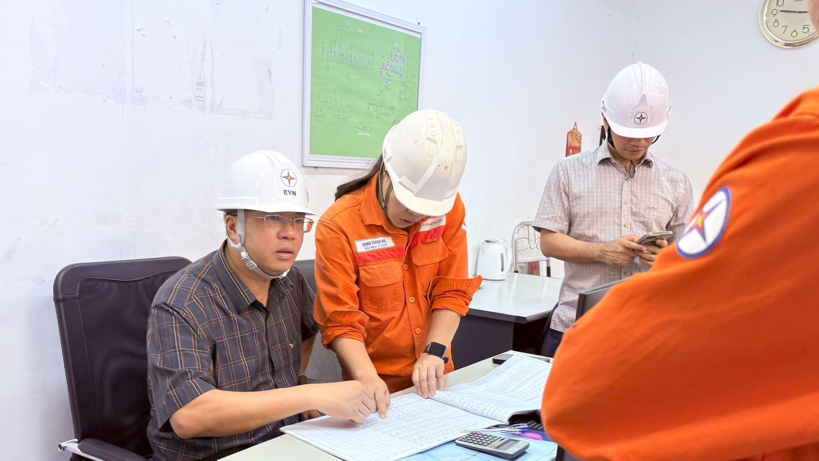 Đoàn công tác kiểm tra thông số đo định kỳ phát nhiệt đường dây và các thiết bị tại nhà điều khiển trạm 220kV tại Công ty Nhiệt điện Uông Bí.