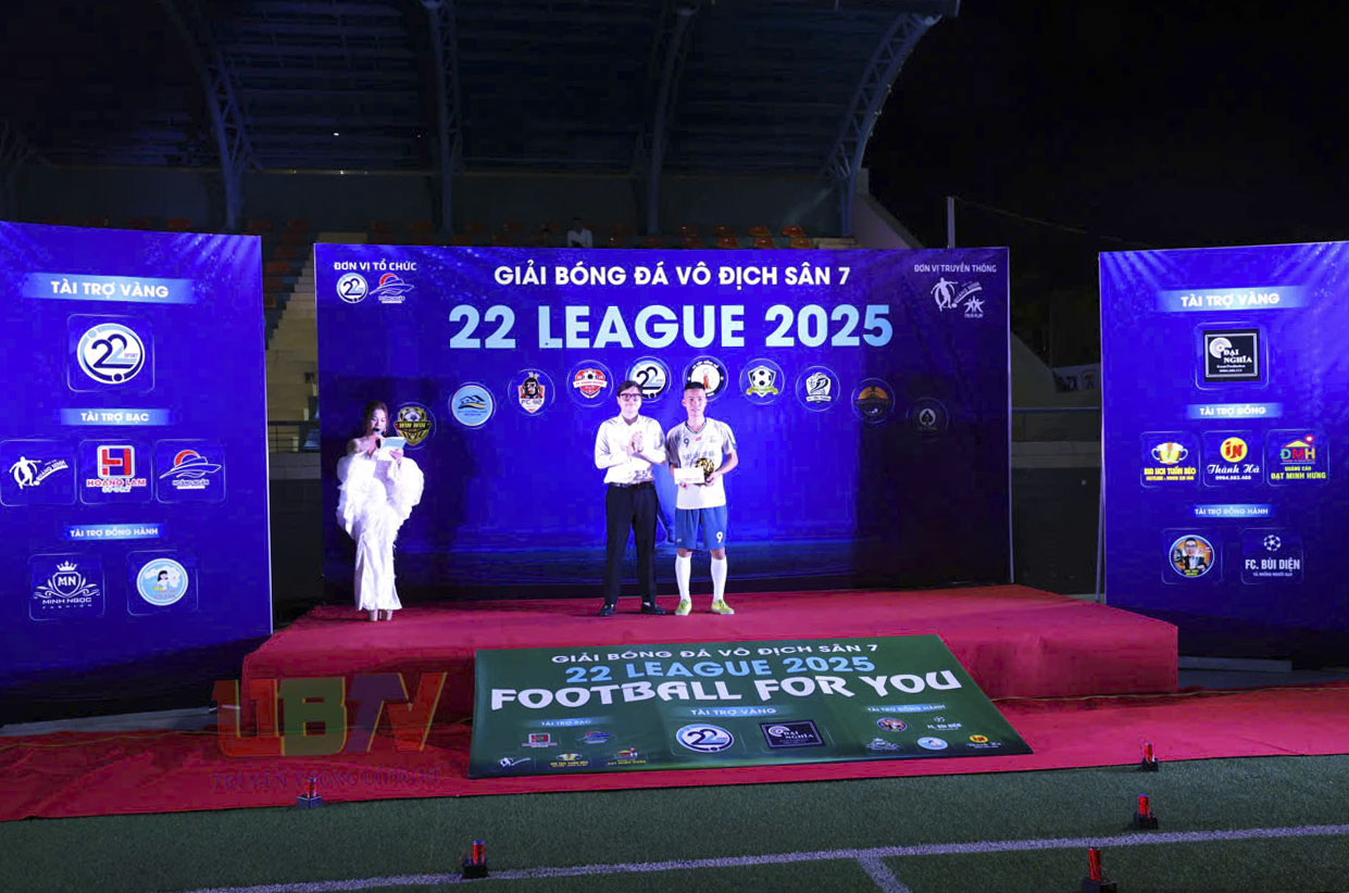 22 League 2025 là giải bóng đá vô địch sân 7 được tổ chức theo thể thức thi đấu mới. Sau 8 tuần tranh tài sôi nổi với 26 trận đấu và 118 bàn thắng đã được ghi, giải đấu đã chọn ra 2 đội xuất sắc nhất là FC YOUNG STAR và FC 22 SPORT để bước vào tranh tài ở trận chung kết. Trận đấu đã thu hút đông đảo khán giả đến xem và cổ vũ.