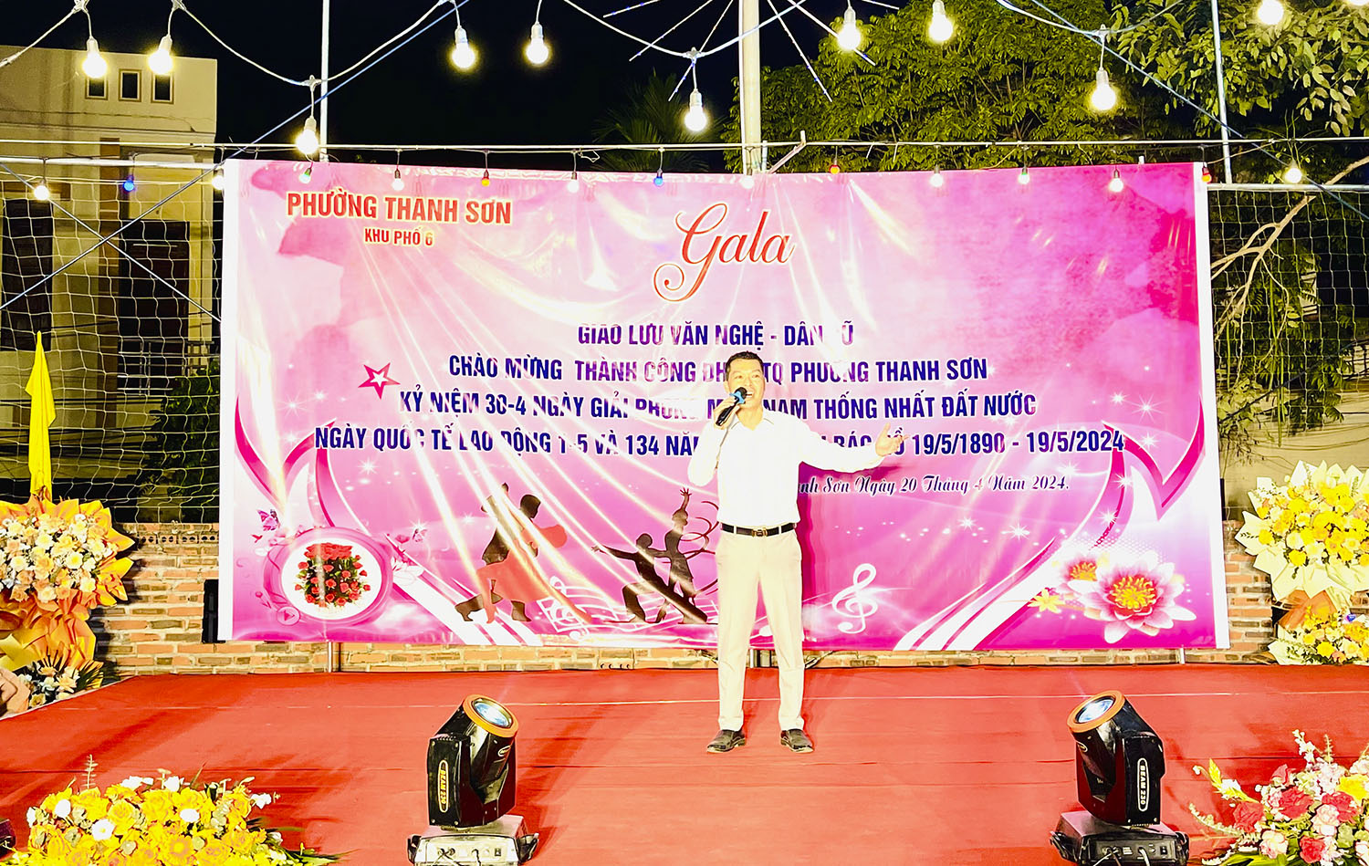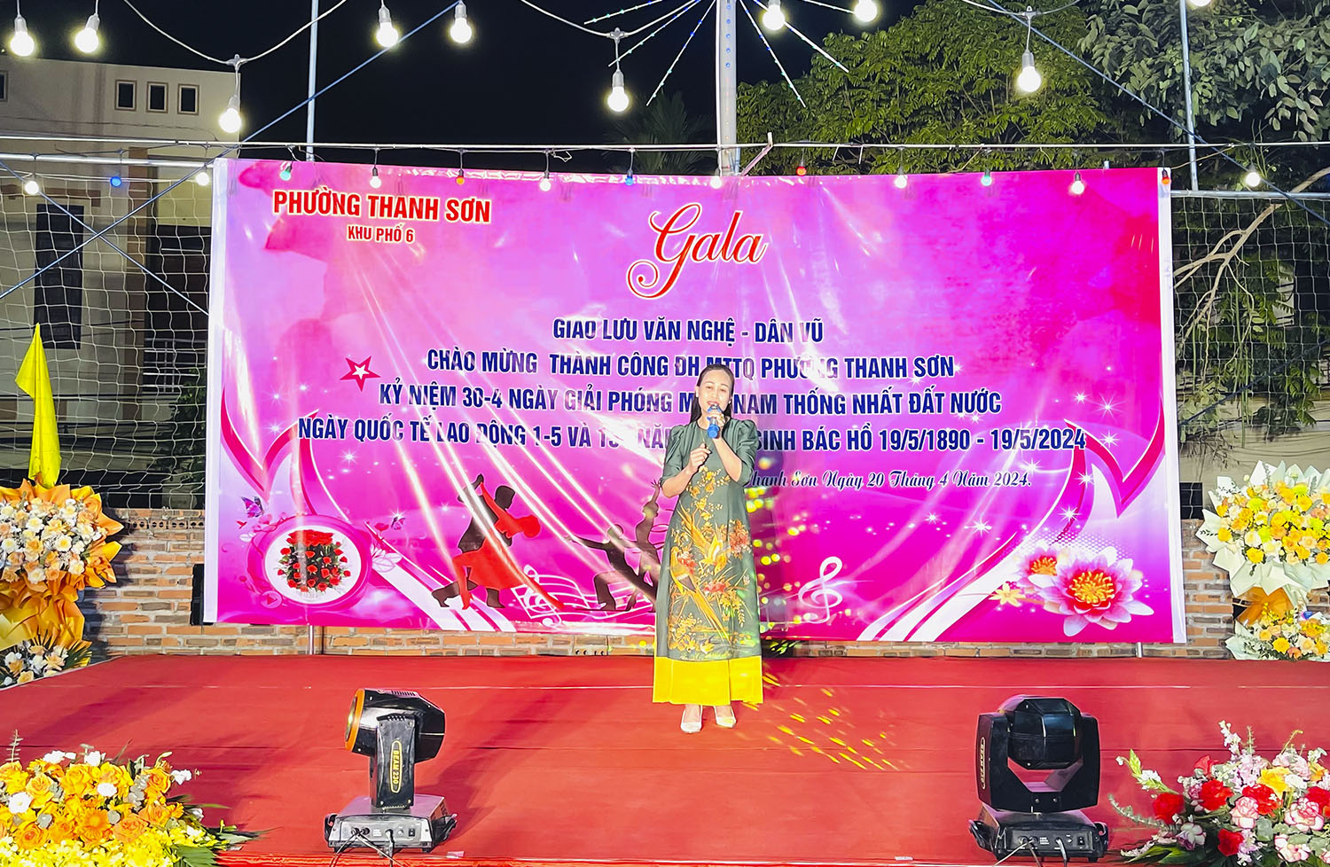 Tối 20/04, khu 6, phường Thanh Sơn tưng bừng tổ chức Chương trình Gala giao lưu văn nghệ dân vũ chào mừng thành công Đại hội MTTQ phường Thanh Sơn; kỷ niệm 49 năm ngày giải phóng miền Nam thống nhất đất nước (30/04/1975 - 30/04/2024), ngày Quốc tế lao động 01/05 và 134 năm Ngày sinh Chủ tịch Hồ Chí Minh (19/05/1890 - 19/05/2024).