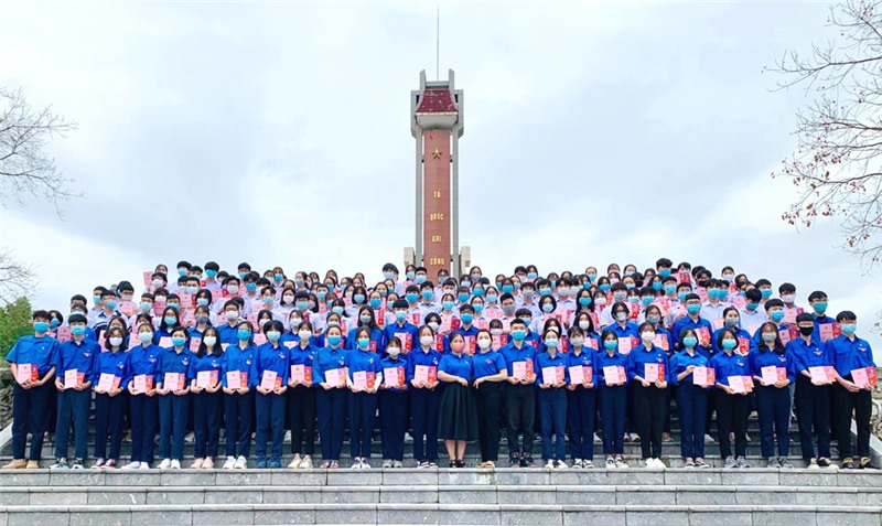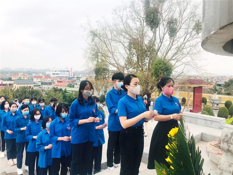Các bạn đoàn viên mới kết nạp làm lễ dâng hương tại Nghĩa trang liệt sỹ thành phố.