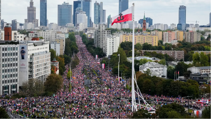 Cuộc biểu tình diễn ra trong bối cảnh mức độ tín nhiệm đối với đảng cầm quyền PiS đang sụt giảm, liên quan tới tình trạng giá cả sinh hoạt leo thang, vấn đề nhập cư và những tranh cãi về thể chế dân chủ tại nước này.