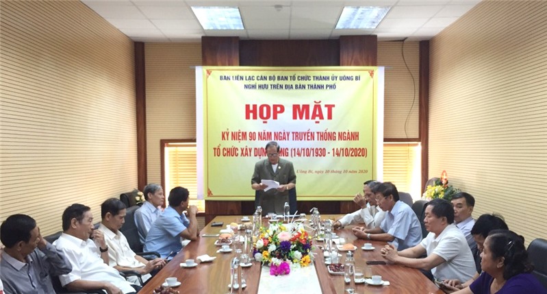 Nhân kỷ niệm 90 năm Ngày truyền thống ngành Tổ chức xây dựng Đảng (14/10/1930-14/10/2020), ngày 10/10, Ban liên lạc cán bộ Ban Tổ chức Thành ủy Uông Bí nghỉ hưu trên địa bàn thành phố tổ chức gặp mặt các đồng chí nguyên là lãnh đạo, chuyên viên của Ban qua các thời kỳ.