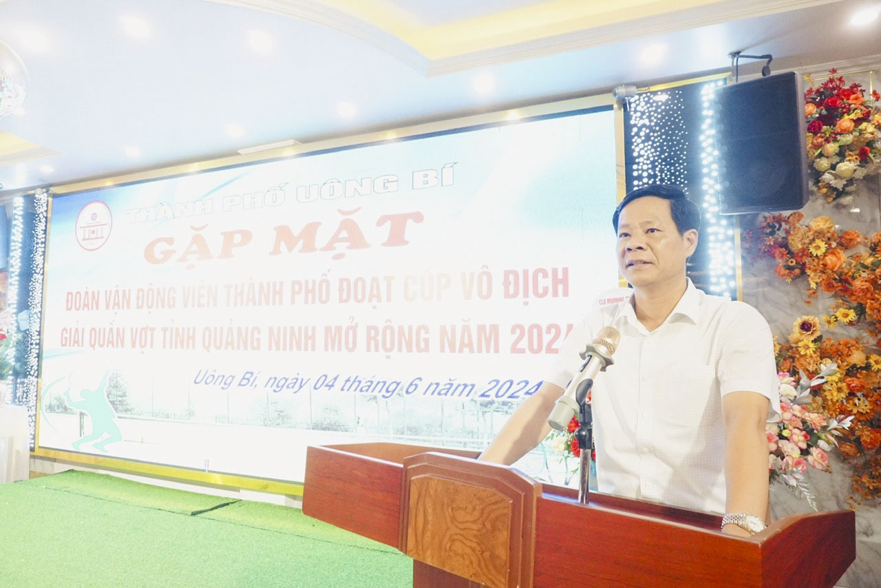 Phát biểu tại buổi gặp mặt, đồng chí Phạm Tuấn Đạt, Phó Bí thư Thành ủy, Chủ tịch UBND thành phố đánh giá cao tinh thần luyện tập nghiêm túc, thi đấu nhiệt tình của đoàn vận động viên thành phố tại Giải Quần vợt tỉnh Quảng Ninh mở rộng năm 2024. Đồng chí chúc mừng thành tích nổi bật của đoàn tại Giải, góp phần làm dày thêm bảng vàng thành tích thể thao của Uông Bí. Trong thời gian tới, đồng chí Chủ tịch UBND thành phố mong muốn các vận động viên tiếp tục phát huy tinh thần đoàn kết, vượt qua khó khăn, tích cực luyện tập, thi đấu sôi nổi với tinh thần thể thao “đoàn kết, trung thực, cao thượng”, giữ vững thành tích thi đấu, ngày càng nâng cao hơn nữa chất lượng phong trào quần vợt trên địa bàn.