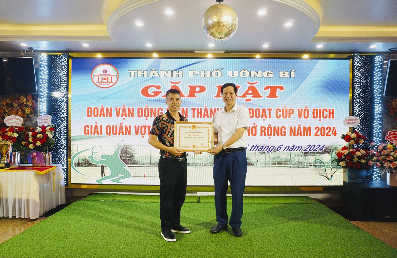 Tối 4/6, thành phố Uông Bí tổ chức Gặp mặt đoàn vận động viên thành phố đoạt cúp vô địch Giải quần vợt tỉnh Quảng Ninh mở rộng năm 2024. Dự, chúc mừng có các đồng chí: Phạm Tuấn Đạt, Phó Bí thư Thành ủy, Chủ tịch UBND thành phố; Nguyễn Trung Hải, Uỷ viên BTV, Chủ nhiệm Ủy ban Kiểm tra Thành ủy; lãnh đạo Phòng Văn hóa - Thông tin, Trung tâm Truyền thông - Văn hóa thành phố.