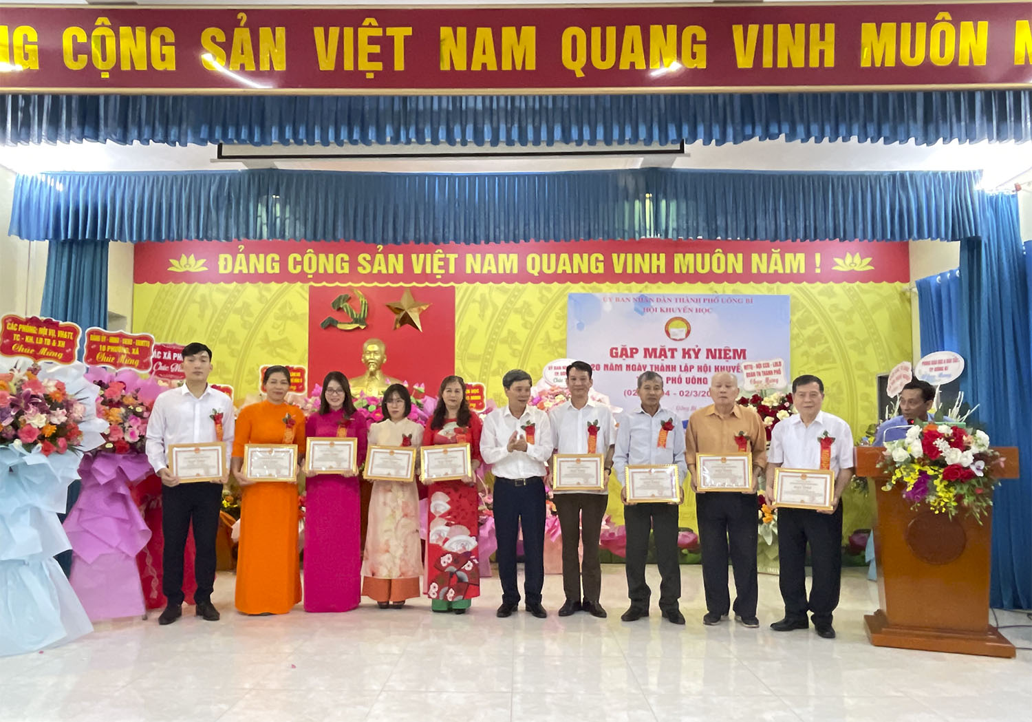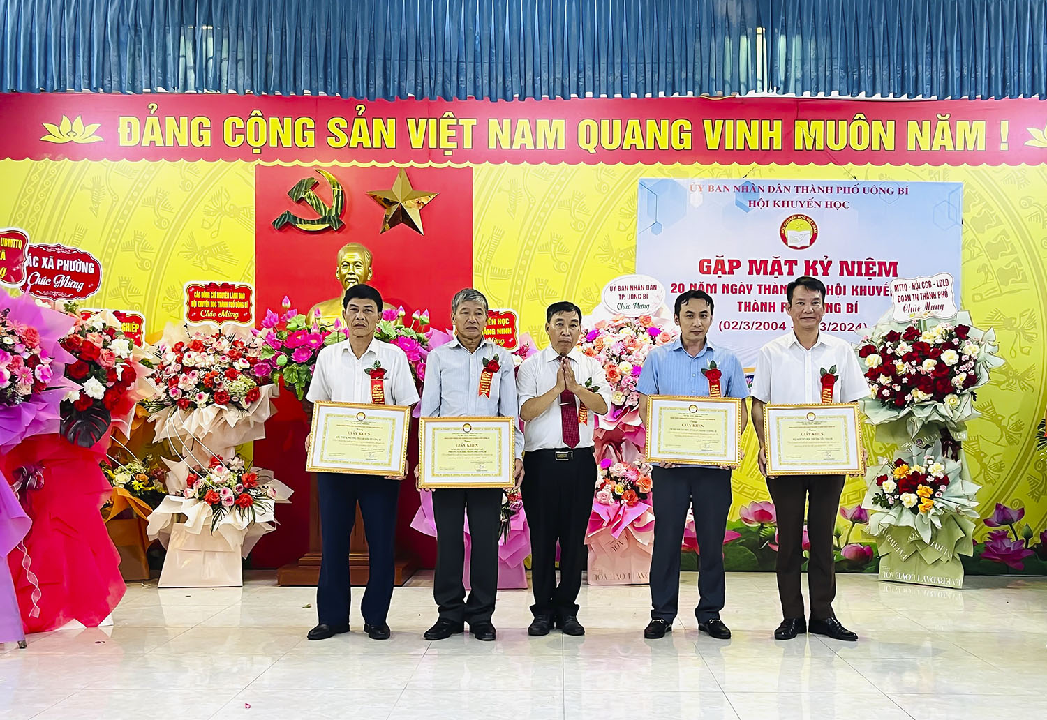 Nhân dịp này, Chủ tịch UBND thành phố Uông Bí đã khen thưởng 5 tập thể và 10 cá nhân đã có thành tích xuất sắc trong công tác khuyến học, khuyến tài, xây dựng xã hội học tập; BCH Hội khuyến học thành phố đã khen thưởng các tập thể và cá nhân đã có thành tích xuất sắc trong công tác khuyến học, khuyến tài, xây dựng xã hội học tập giai đoạn 2004 - 2024.
