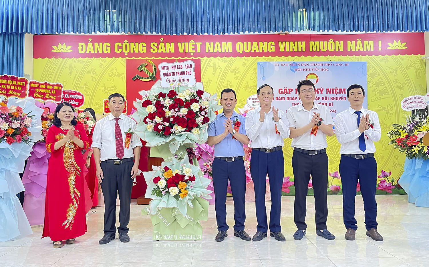 Lãnh đạo Hội Khuyến học tỉnh tặng hoa chúc mừng.