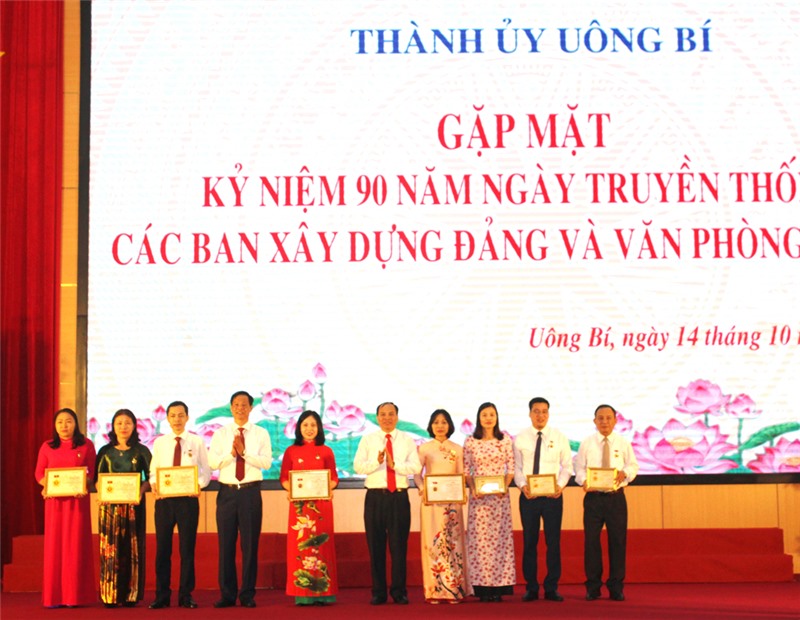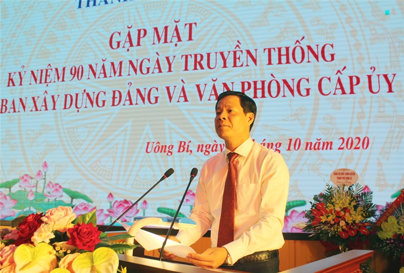 Chiều 14-10, Thành ủy Uông Bí tổ chức Gặp mặt kỷ niệm 90 năm Ngày truyền thống các Ban xây dựng Đảng và Văn phòng cấp ủy. Tới dự có các đồng chí: Trần Văn Lâm, Tỉnh ủy viên, Bí thư Thành ủy, Chủ tịch HĐND thành phố; Phạm Tuấn Đạt, Phó Bí thư Thường trực Thành ủy; các đồng chí nguyên lãnh đạo thị xã, thành phố, lãnh đạo các Ban xây dựng Đảng và Văn phòng cấp ủy Uông Bí qua các thời kỳ.
