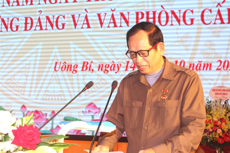 Phát biểu tại chương trình gặp mặt, đồng chí Trần Văn Lâm, Tỉnh ủy viên, Bí thư Thành ủy, Chủ tịch HĐND thành phố ghi nhận, đánh giá cao những đóng góp của các Ban xây dựng Đảng và Văn phòng cấp ủy đối với sự phát triển của Uông Bí trong những năm qua. Thời gian tới, đồng chí đề nghị các Ban xây dựng Đảng và Văn phòng cấp ủy tiếp tục phát huy những thành tựu đã đạt được; thực hiện tốt chức năng tham mưu giúp Thành ủy lãnh đạo, chỉ đạo toàn diện các mặt công tác; góp phần xây dựng Đảng bộ thành phố ngày càng trong sạch, vững mạnh, đưa Uông Bí phát triển lên tầm cao mới.