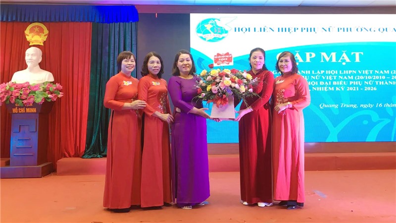 Tại buổi gặp mặt, các đại biểu đã cùng nhau ôn lại lịch sử hình thành Hội LHPN Việt Nam cũng như những đóng góp của phụ nữ trong sự nghiệp xây dựng và bảo vệ Tổ quốc. Phát huy truyền thống tốt đẹp của phụ nữ Việt Nam, dưới sự lãnh đạo trực tiếp của Hội LHPN TP Uông Bí, BCH Đảng bộ phường Quang Trung, sự phối kết hợp và tạo điều kiện của UBND, các ban ngành đoàn thể phường, các khu dân cư, những năm qua, cán bộ, hội viên và các tầng lớp phụ nữ trên địa bàn phường luôn đoàn kết, tâm huyết xây dựng, phát triển tổ chức hội và phong trào phụ nữ. 09 tháng đầu năm 2021, ngoài việc thực hiện tốt các chương trình công tác, Hội LHPN phường cũng tích cực triển khai các phong trào thi đua yêu nước “Phụ nữ tích cực học tập, lao động sáng tạo, xây dựng gia đình hạnh phúc”, 2 cuộc vận động “Rèn luyện 4 phẩm chất Tự tin - Tự trọng -Trung hậu - Đảm đang” và “Xây dựng gia đình 5 không, 3 sạch”; tăng cường tuyên truyền, góp phần tổ chức thành công các sự kiện chính trị quan trọng như: Đại hội đại biểu toàn quốc lần thứ XIII của Đảng; bầu cử đại biểu Quốc hội và HĐND các cấp, nhiệm kỳ 2021-2026; tích cực trong công tác phòng, chống dịch Covid-19, tham gia tổ chức chiến dịch tiêm vắc xin phòng Covid-19 toàn dân đảm bảo an toàn, hiệu quả...