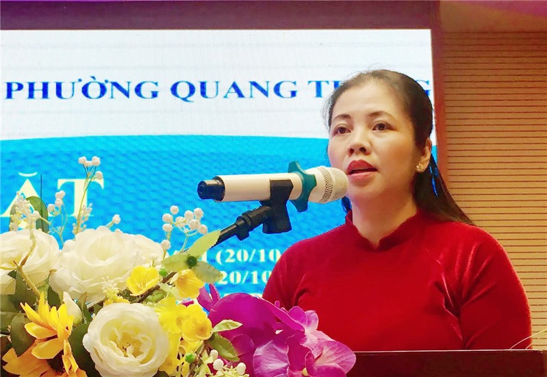 Chủ tịch Hội LHPN phường Quang Trung phát biểu tại buổi gặp mặt.