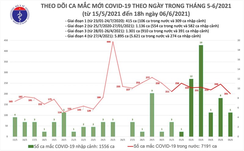 Như vậy trong ngày 6/6, cả nước ghi nhận 206 ca mắc COVID-19.